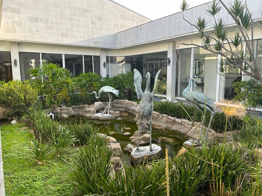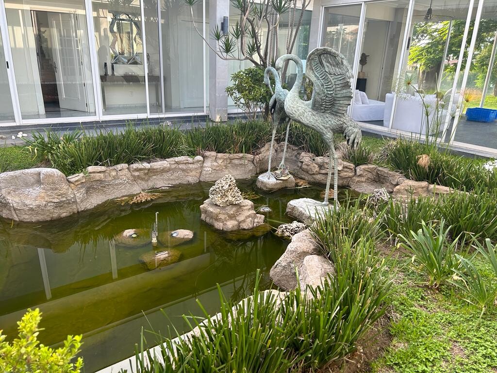 LA CASA CUENTA CON ESCULTURAS DE SERGIO BUSTAMANTE, ARTE RECONOCIDO, MUEBLES DE LUJO, Y UNA FASCINANTE DECORACION, EN EL CENTRO DE LA CASA CUENTA CON UN JARDIN Y LAGO ARTIFICIAL, CON DECORACION DE LUCES, CISNES DE HIERRO FORJADO Y FUENTE QUE DAN UNA ARMONIA ESPECIAL A LA CASA, EN PB TIENE LAS 5 HABITACIONES CON BAÑO Y VESTIDOR, CUENTA CON UNA COCINA INTEGRAL, REFRIGERADOR PARA VINOS, COMEDOR Y SALA MUY AMPLIOS, JARDIN CON TERRAZA TECHADA, EN EL JARDIN TIENE VARIAS ESCULTURAS DE FAMOSO ESCULTOR COMO FUENTES, EN EL SOTANO TIENE CUARTO DE CINE Y DE JUEGOS CON BILLAR, UN CUARTO CON VAPOR Y SAUNA UN BAÑO CON UN ENORME VESTIDOR CON JACUZY, ESTACIONAMIENTO TECHADO CON PORTON ELECTRICO PARA 6 AUTOS. AREA DE LAVADO Y CUARTO DE SERVICIO CON BAÑO.