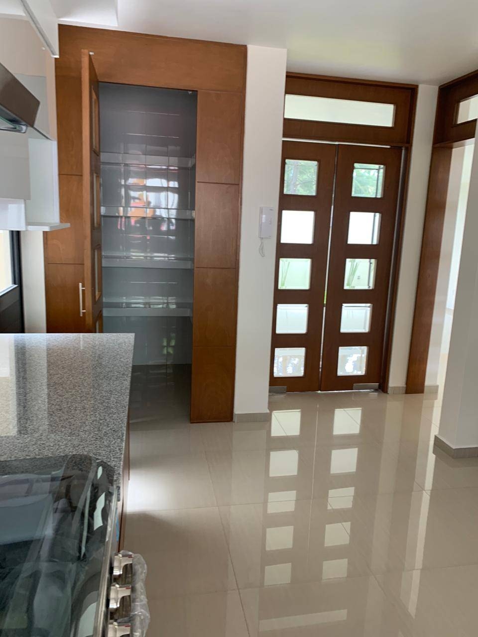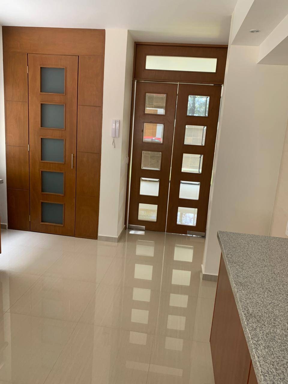 medio baño, amplio recibidor, cocina integral, sala-comedor amplio,jardin, bodega bajo escalera, escaleras con doble altura y tragaluz.
