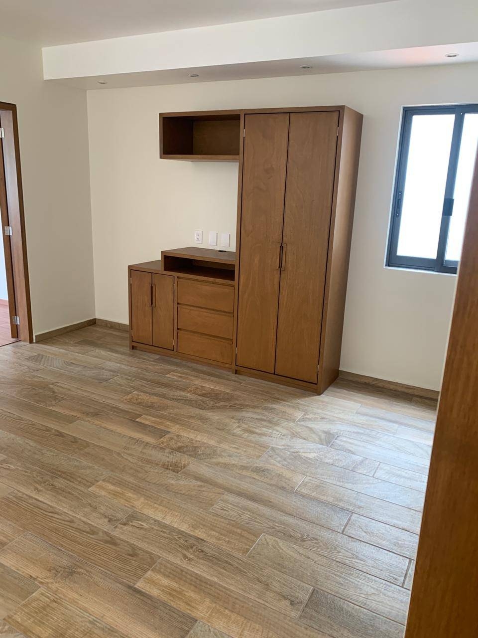 area de tv con mueble y closet para blancos, recamara principal con vestidor y baño, recamara 2 y 3 con closet y baño, cuarta recamara o estudio.