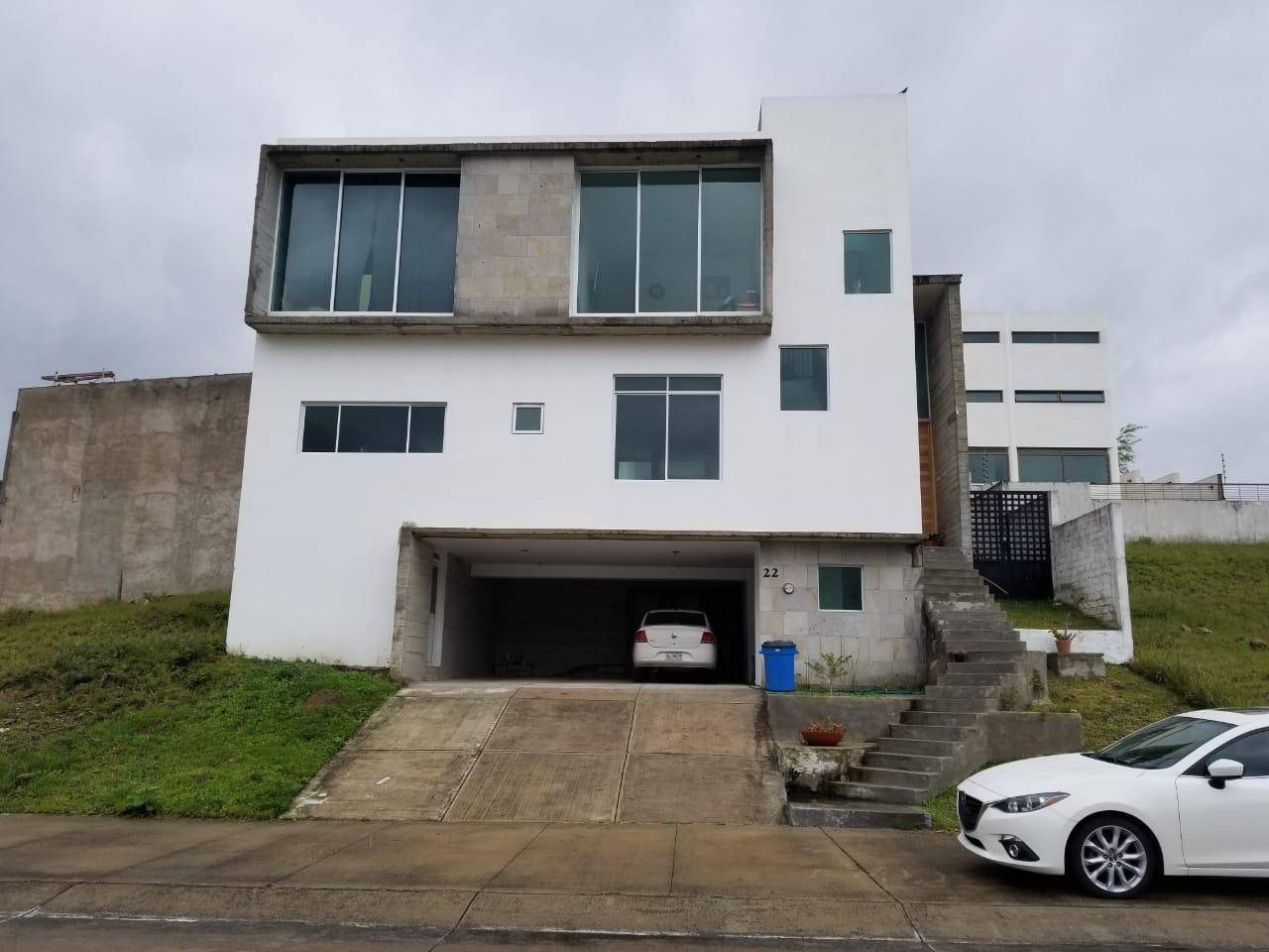 337 m2 de terreno 280 m2 de construcción, bodega grande en cochera que puede ser adaptada como cuarto de juegos, de servicio etc.. cochera para 4 autos PB: recibidor, ante sala, comedor, medio baño, cocina, sala de tele, patio con jardín amplio. PA: 4 recámaras, 3 baños. Cuarto de servicio. principal con baño completo y walking clóset. 2da recamara con baño completo, 3 y 4ta recamara comparten baño y walking clóset. Hidroneumatico, aljibe . Por el tipo de terreno no queda pared con pared de ninguna casa. Vistas panorámicas