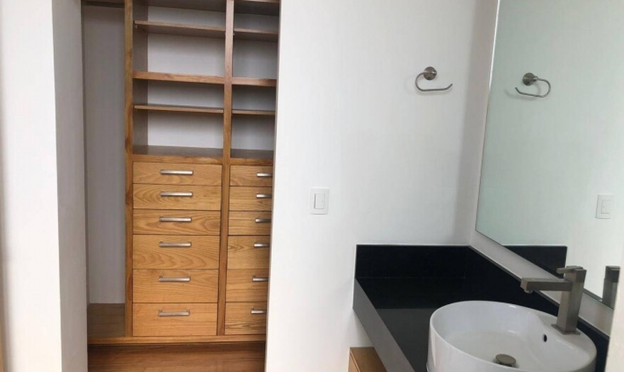 El Departamento Penthouse cuenta con doble altura, 2 baños completos de cuarzo, 2 recamaras con pisos de madera (el principal con aire acondicionado y calefacción), cocina de granito, cortinas blackout, ventiladores, 2 cajones de estacionamiento y bodega.
