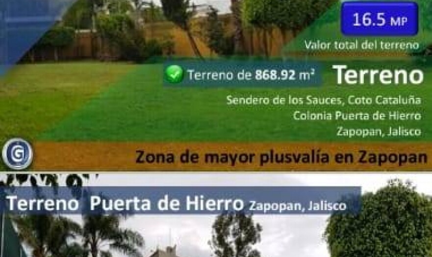 $19,000 x m2precio terreno $16,500,000
