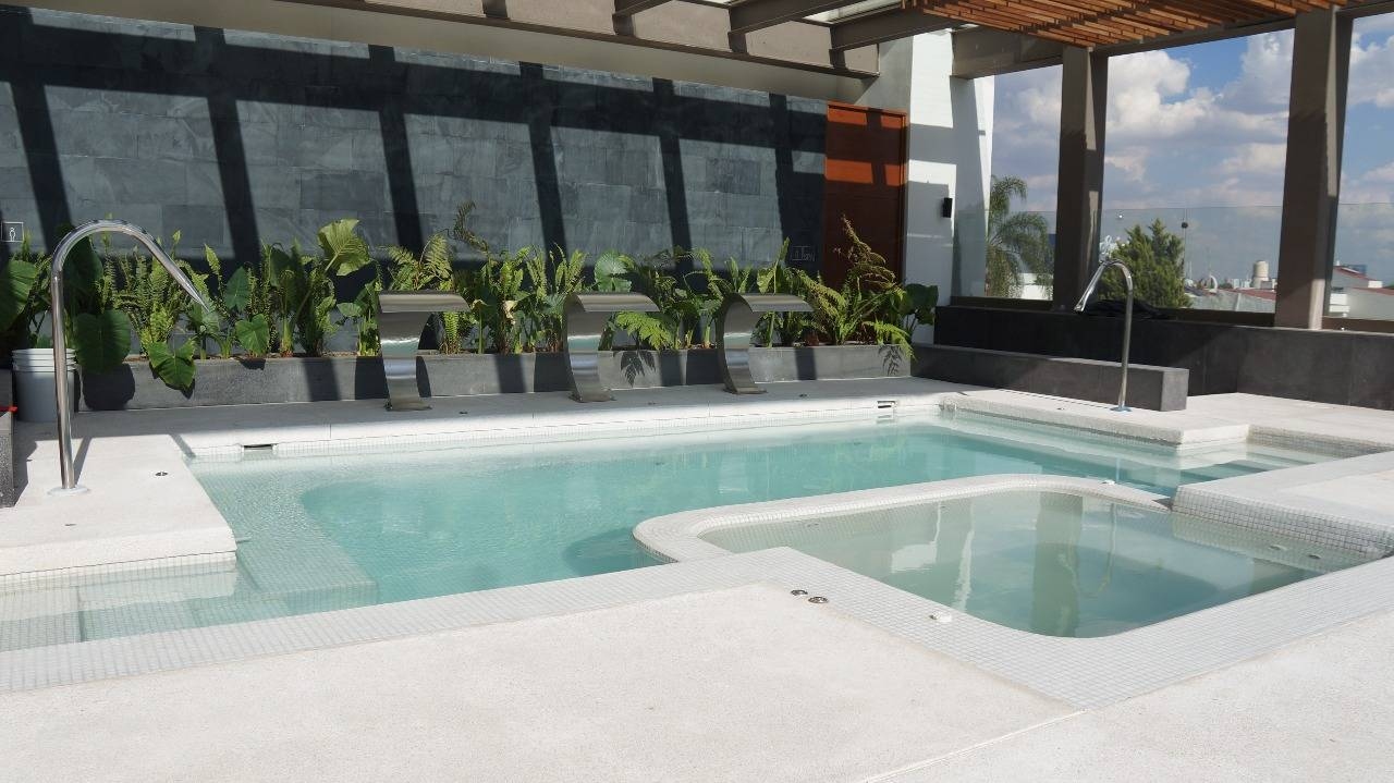 Alberca , aire acondicionado, gimnasio, área de lavado, salón de juegos, bodega, elevador, area comun, seguridad, áreas verdes.