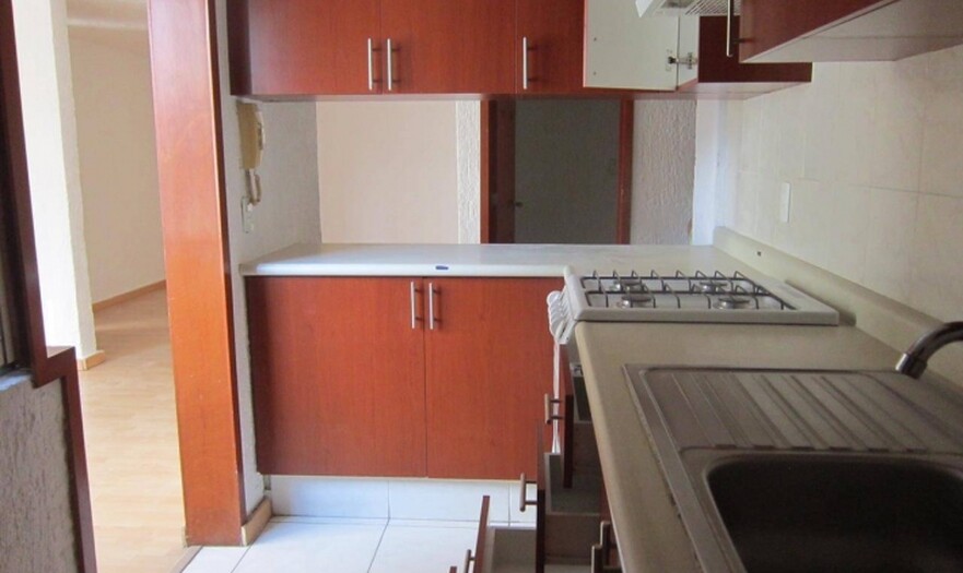 3 recamaras, 2 baños, recamaras con closet, la principal con baño, cuarto de servicio, cocina integral, sala y comedor estacionamiento para 2 autos, jardín en el área común.