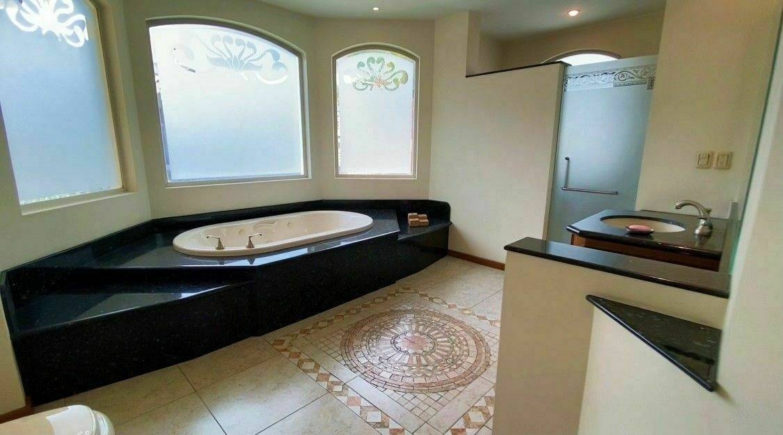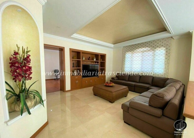 3 recamaras todas con baño completo y cuarto vestidor, la principal con tina de hidromasaje, estar de T. V. Cuarto de lavado y patio para tendedero