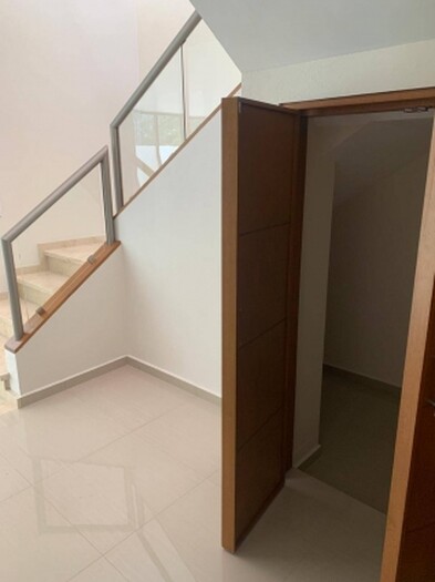 medio baño, amplio recibidor, cocina integral, sala-comedor amplio,jardin, bodega bajo escalera, escaleras con doble altura y tragaluz.