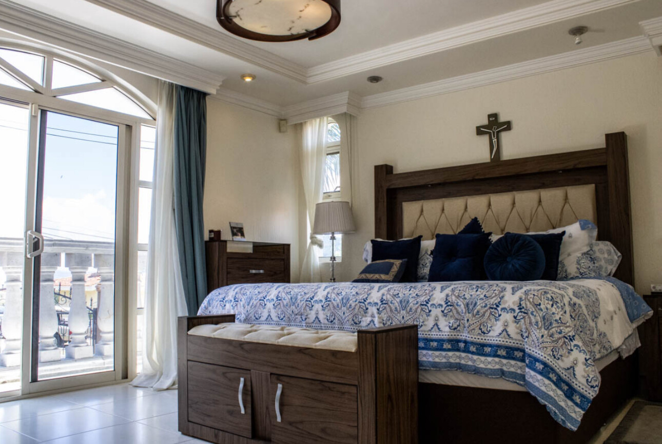 – Recámara principal con vestidor, balcón, baño, tina de hidromasaje, chimenea.